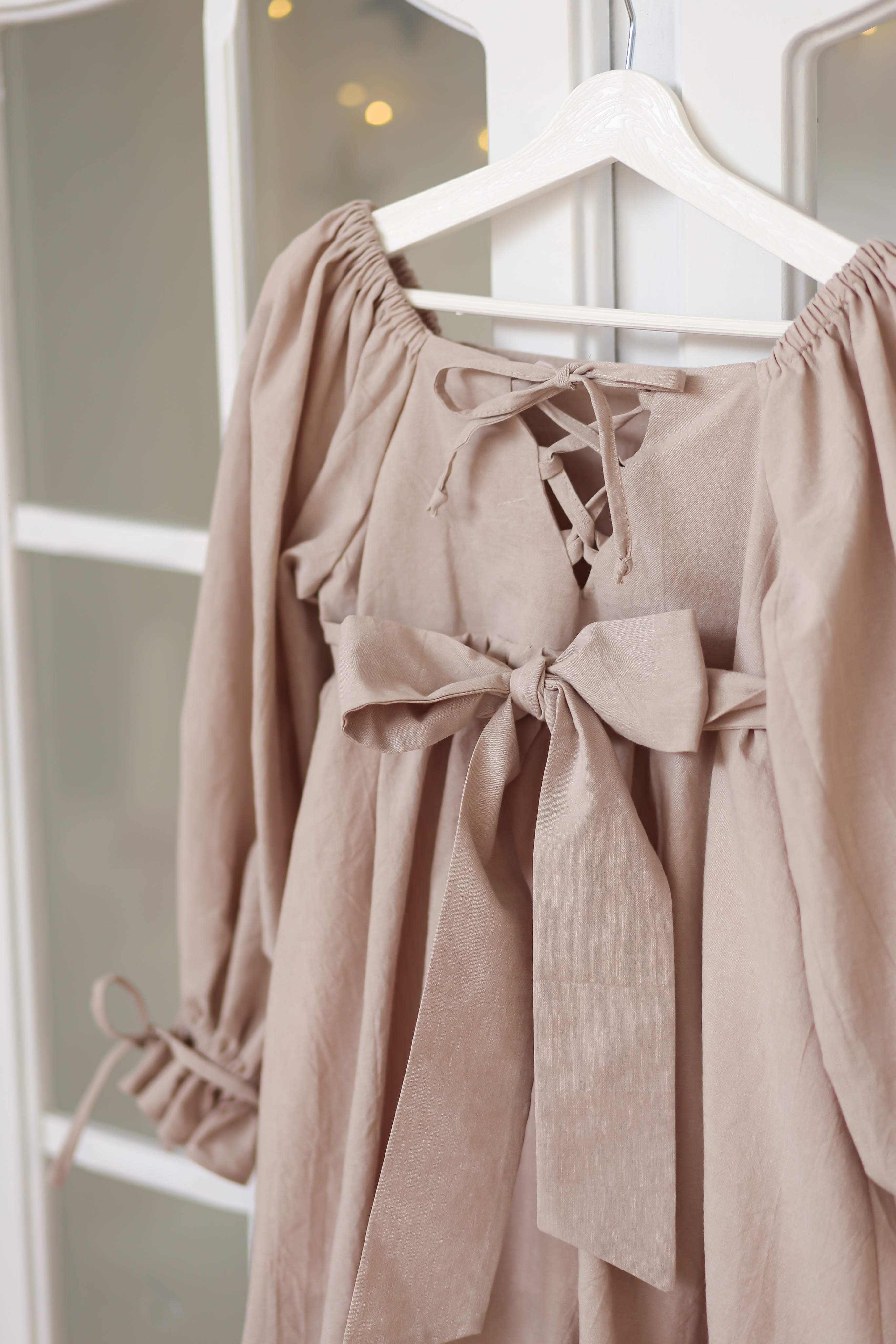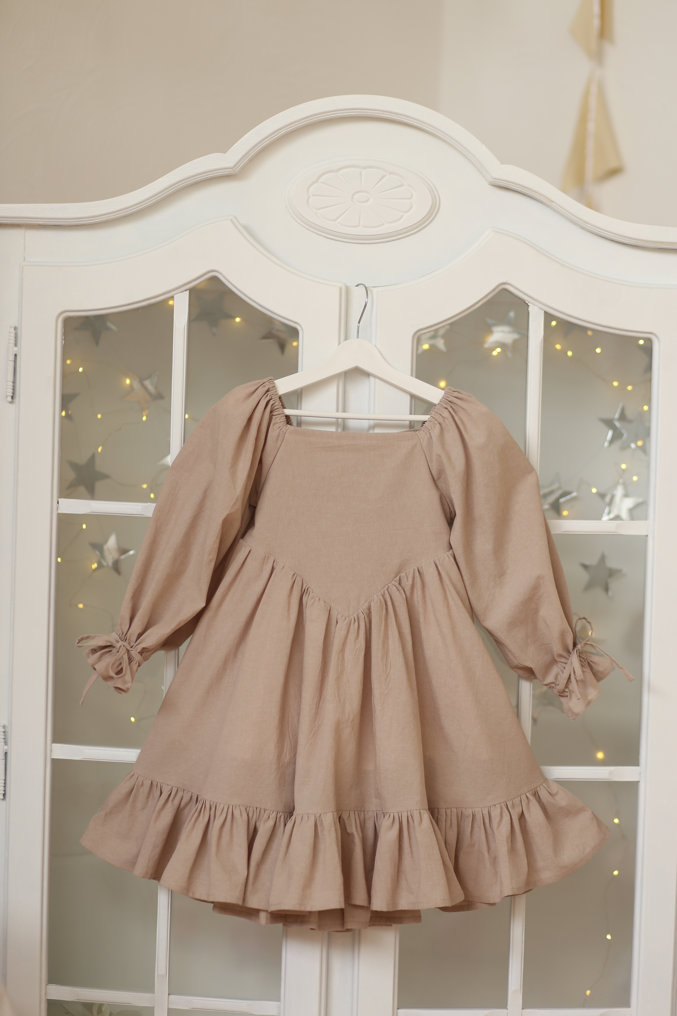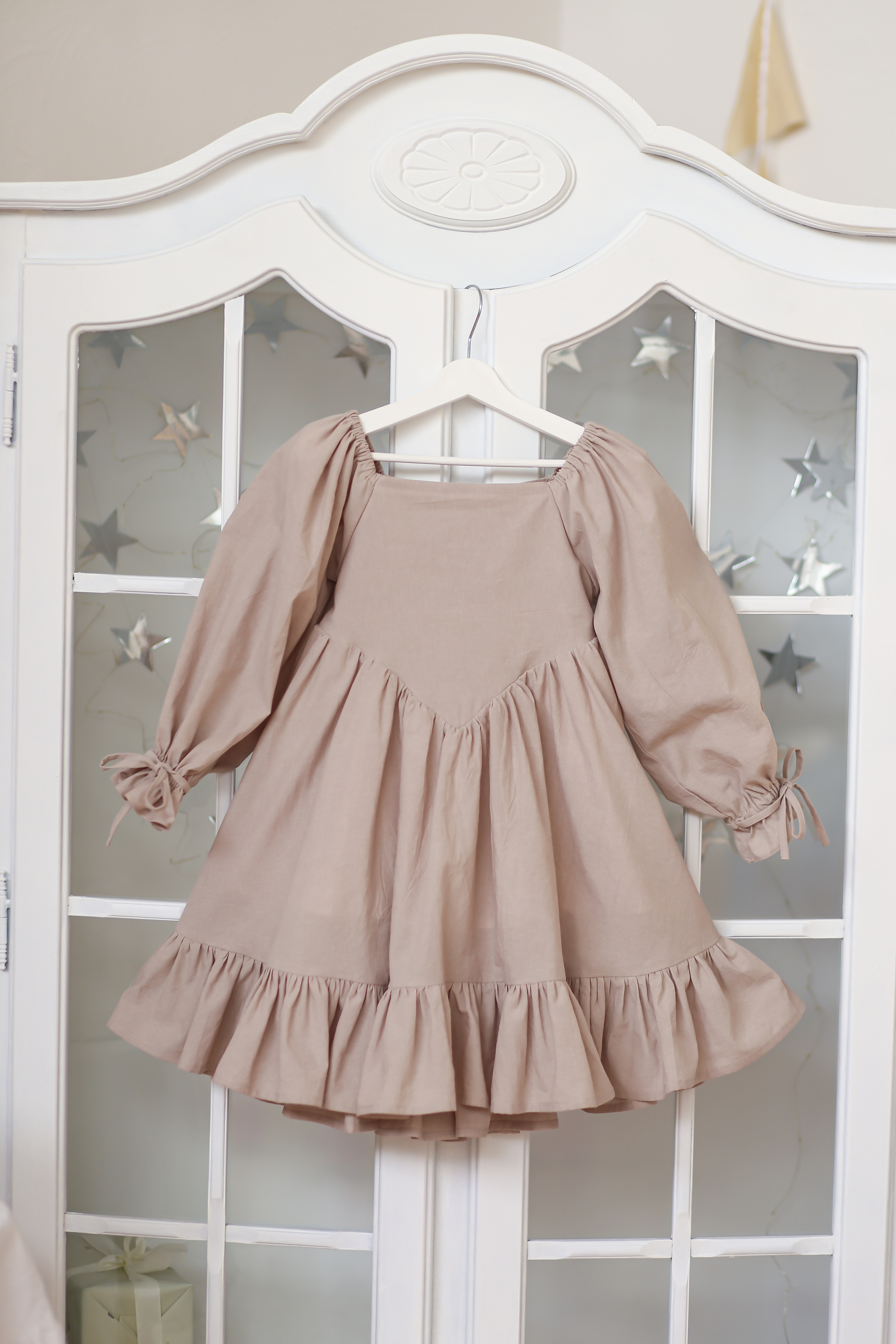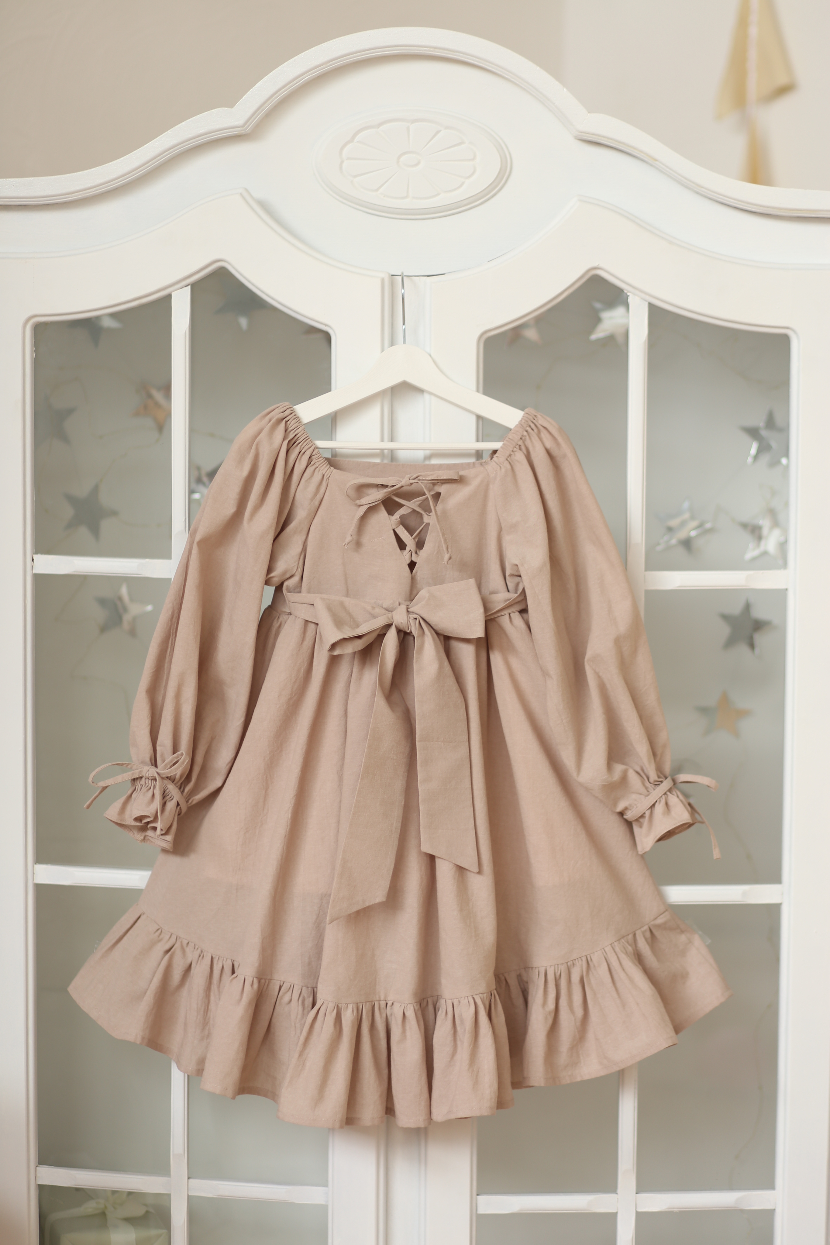 Платье для девочки из 100% натурального хлопка со шнуровкой по спинке и с завязками на рукавах. Это уникальное в своем роде нарядное платье идеально подойдет как для торжественных мероприятий, так и для повседневного использования.