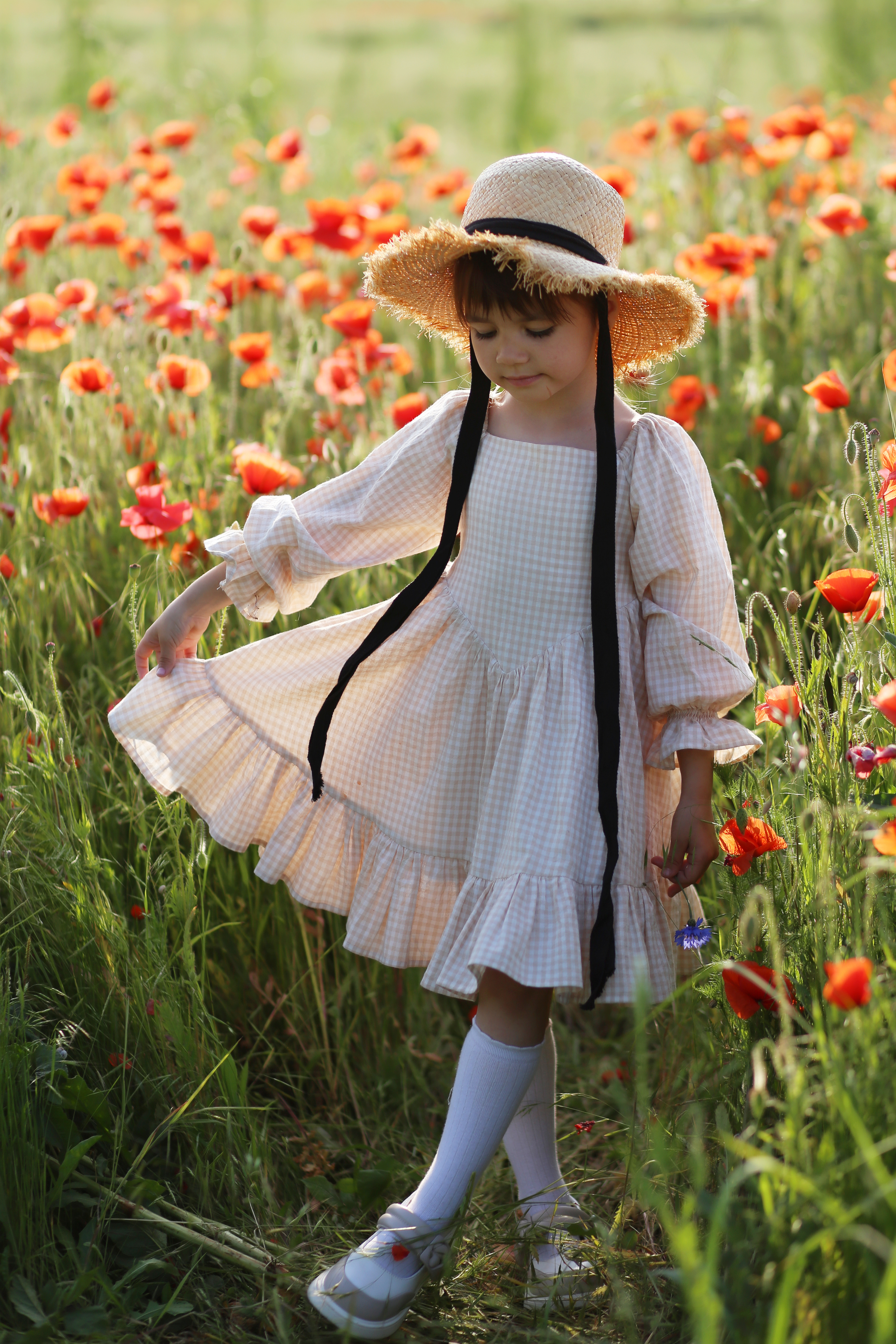 Это платье не только красиво, но и удобно. Легкий и приятный к телу хлопок отлично дышит, что позволит девочке чувствовать себя комфортно даже в самые жаркие дни. Завязки на спине и на рукавах добавляют изюминку в образ и позволяют подогнать платье по фигуре вашего ребенка.