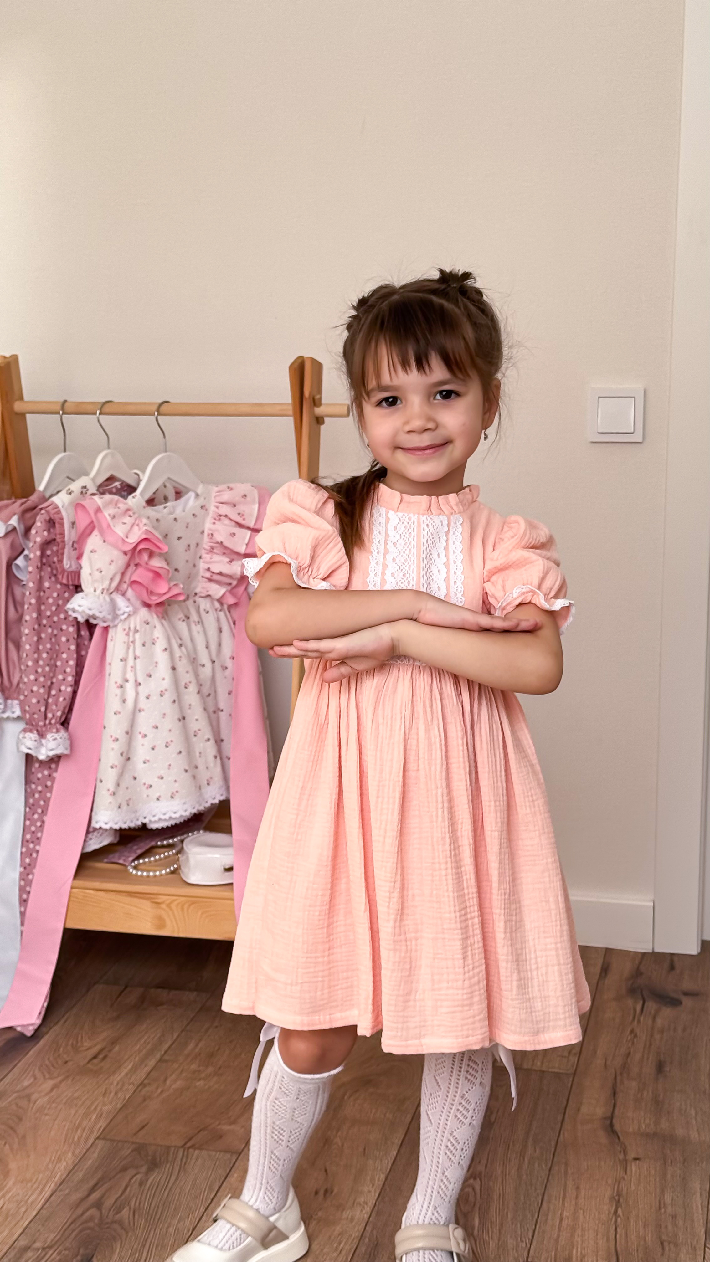 Универсальный и практичный дизайн подходит как для повседневного ношения, так и для мероприятий/фотосессий. Винтажный стиль платья привлечет внимание и подчеркнет индивидуальность маленькой модницы.