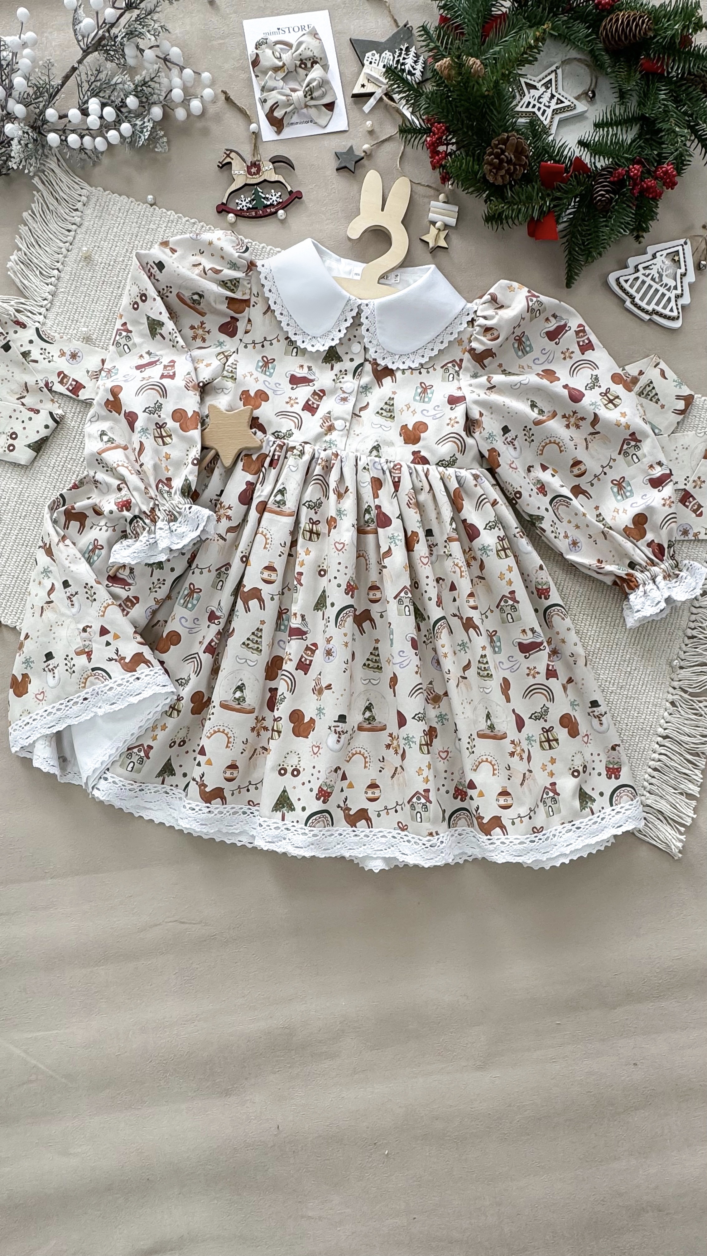 Платье из премиального хлопка, с кружевным воротничком, воздушными рукавами с кружевными рюшами, с поясом, который будет завязываться по спинке на бант. Для пышности платье с хлопковым подъюбником, по низу с хлопковым кружевом.