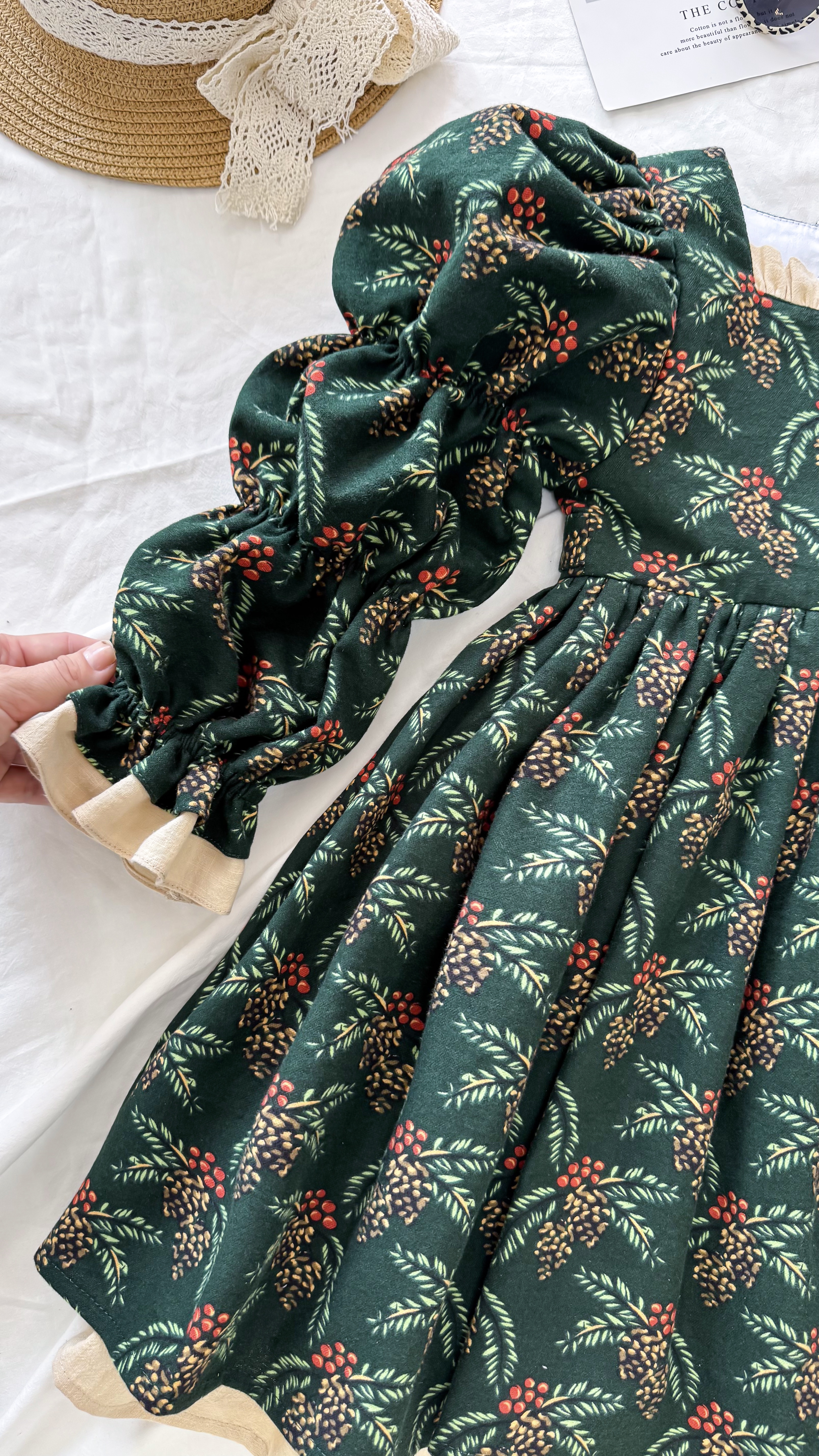 Платье из фланели - невероятно мягкое и комфортное, с необычным вырезом и рюшей по горловине, с объемными рукавами и рюшей по низу рукава, с пышной юбкой и батистовым подъюбником, верх платья на мягкой хлопковой подкладке, с регуляторами на талии для приталенного эффекта, с деревянными пуговицами.