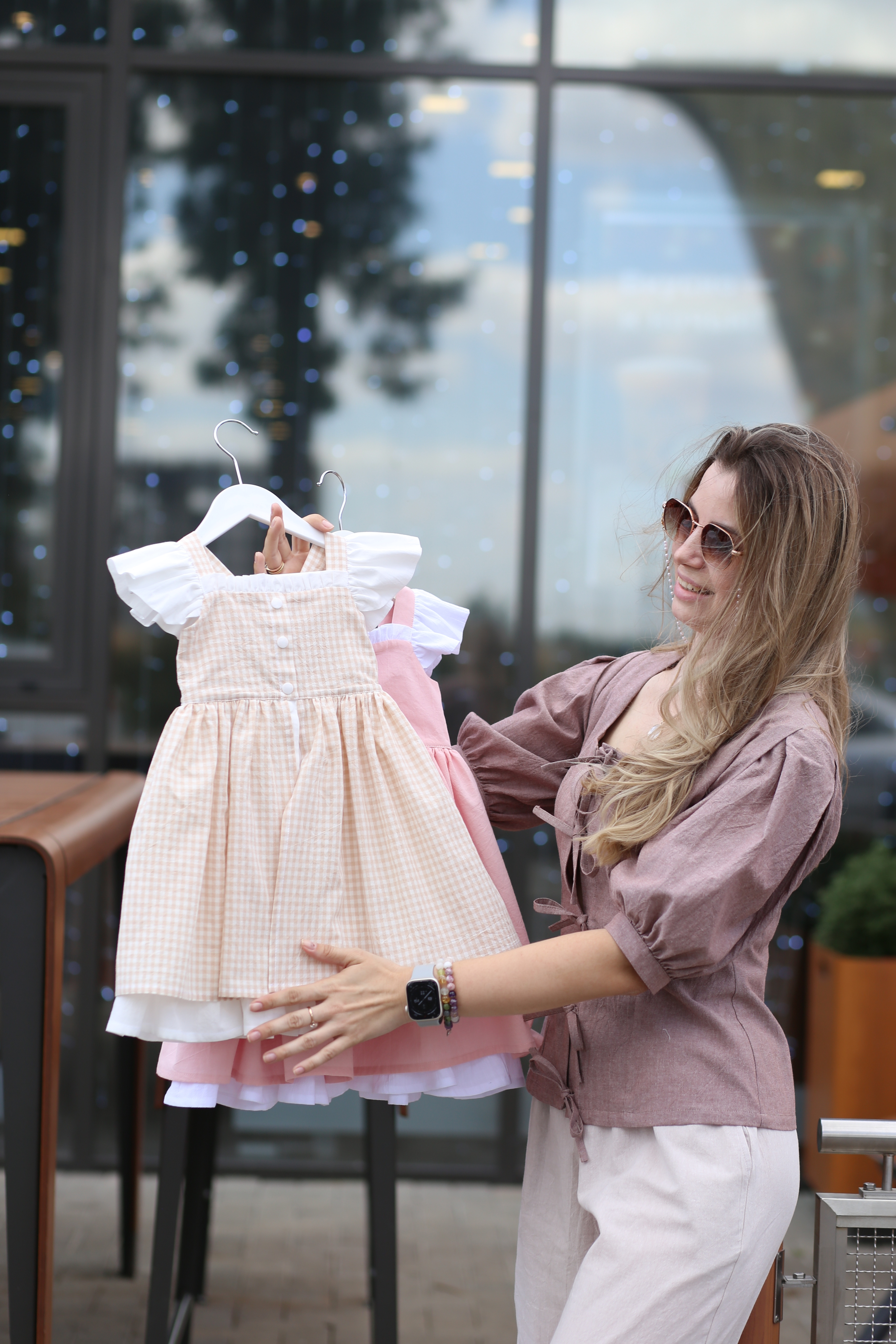 Для пышности добавлен хлопковый подъюбник. Платье декорировано мягчайшим вязанным хлопковым кружевом.